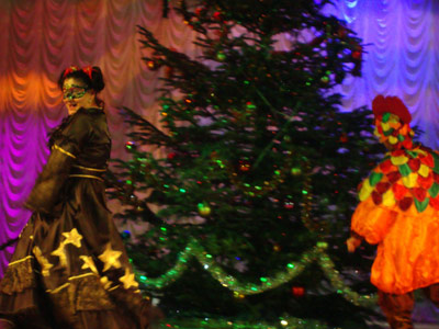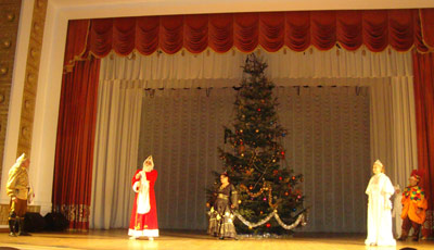 После завершения основного действия, по доброй традиции все детишки поднимутся на сцену к большой и красивой елке, где будут общаться с Дедом Морозом и Снегурочкой.