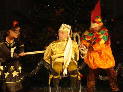 Режиссер-постановщик и сценарист Новогодней сказки - Заслуженный артист РА Роман Сабуа. В спектакле задействованы такие именитые артисты, как Сырбей Сангулия, Темраз Чамагуа, Мадлена Дбар, Розита Тания, Сенар Сабуа, Харзалия Родик.