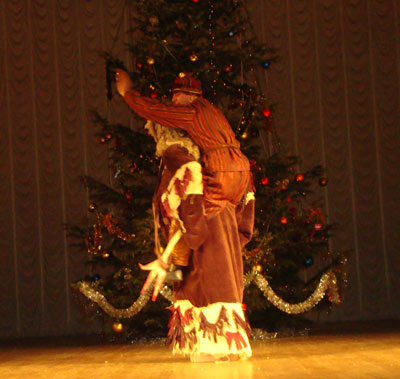Ребят ждет встреча с Дедом Морозом и Снегурочкой, Карликом и Великаном, ведьмой и символом этого года Зайчиком.