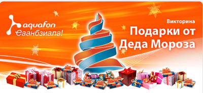 Компания АКВАФОН поздравляет первых победителей и благодарит всех, кто принял участие в викторине «Подарки от Деда Мороза». Для абонентов АКВАФОН подобные проекты состоятся еще не раз, и Вы сможете испытать себя и одержать максимум побед!