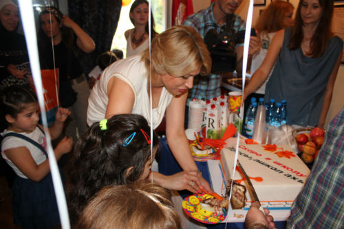 Главной целью встречи было оказание материальной поддержки семьям, у которых дети в этом году идут в школу. Инициаторами данного социального проекта выступили сотрудники Компании АКВАФОН, которые единогласно приняли решение направить  все средства,  выделенные на проведение корпоративного мероприятия в честь празднования 11-летия Компании, на две социальные акции. В рамках одной из них - часть средств выделена на оказание  материальной помощи детям, оставшимся без крова в результате боевых действий на Украине. Другая часть средств, сумма которых составила 230 000 рублей, была передана семьям репатриантов на приобретение необходимых школьных принадлежностей для сбора будущих первоклассников в школу.