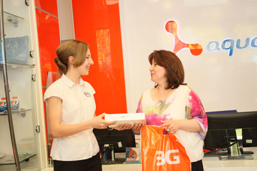 15 июля, в торжественной обстановке, АКВАФОН собрал победителей акции в Центре Обслуживания по адресу Проспект Мира, 80. Все «счастливые абоненты» получили из рук сотрудников АКВАФОН заслуженные призы. И, как признались многие участники, для них стал приятной неожиданностью звонок представителей Компании с оповещением о выигрыше.